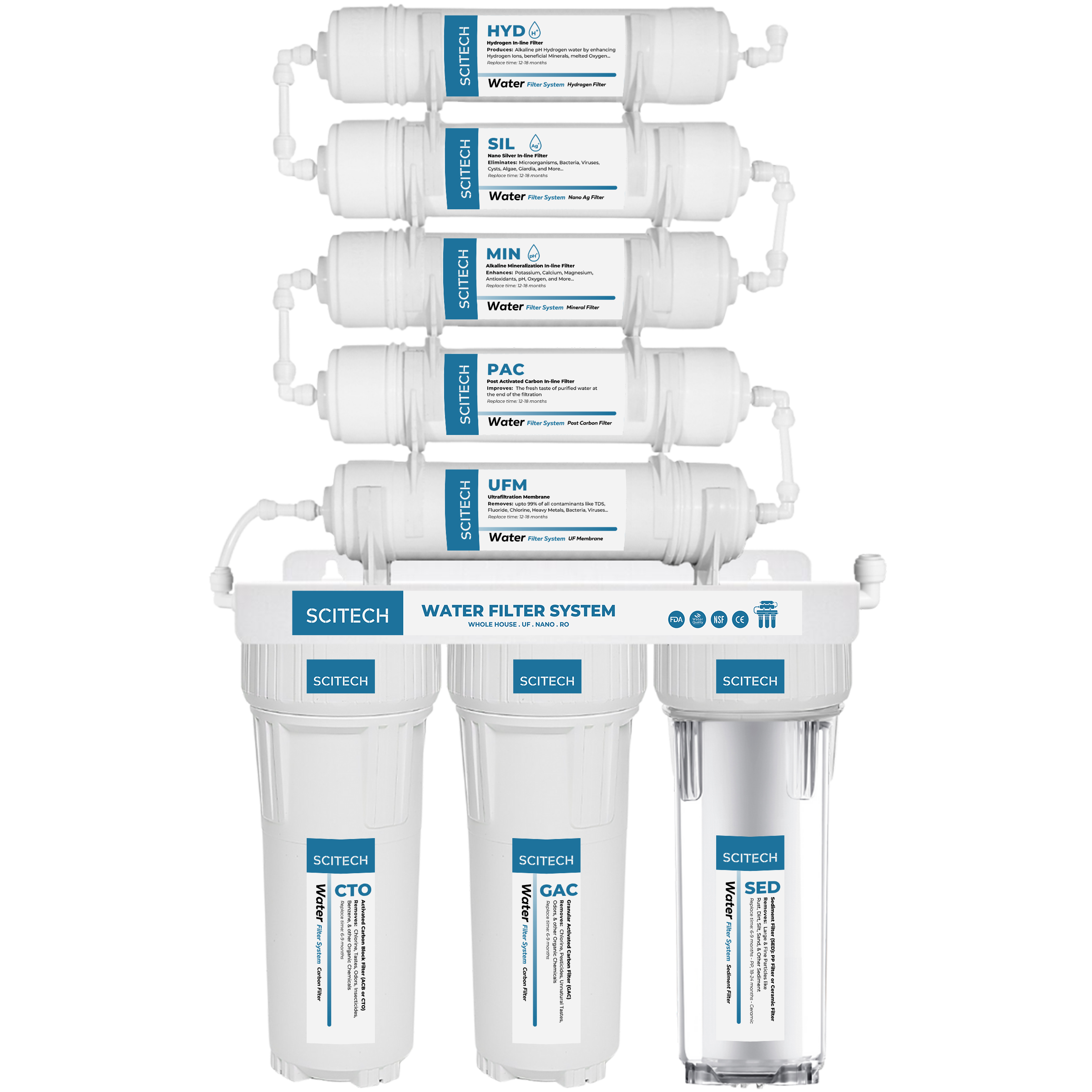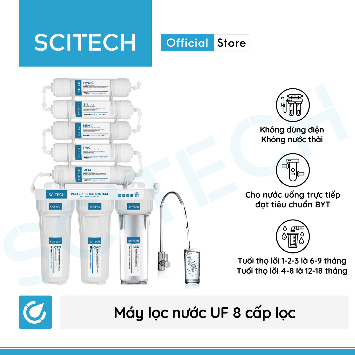 Máy lọc nước UF Scitech Ultrabox 4-5 cấp lọc giúp lọc sạch cặn bẩn, rỉ sét, rong rêu, chất hữu cơ và các tạp chất khác lẫn trong nước. Bộ lọc thích hợp dùng lọc