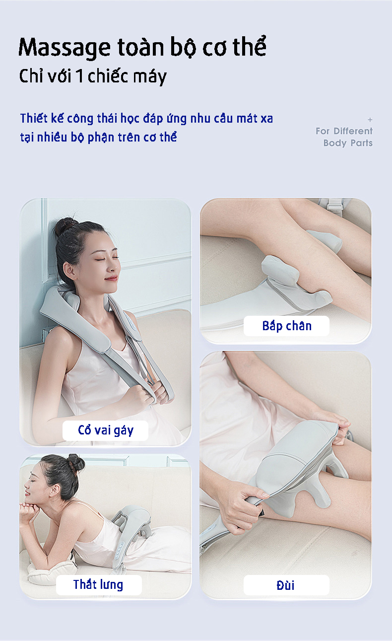 Gối Massage Đa Năng Gối massage được cải tiến với nhiều tính năng riêng biệt mà các gối massage cùng dòng chưa có được. Gối massage được chia thành 3 phần massage với chức năng