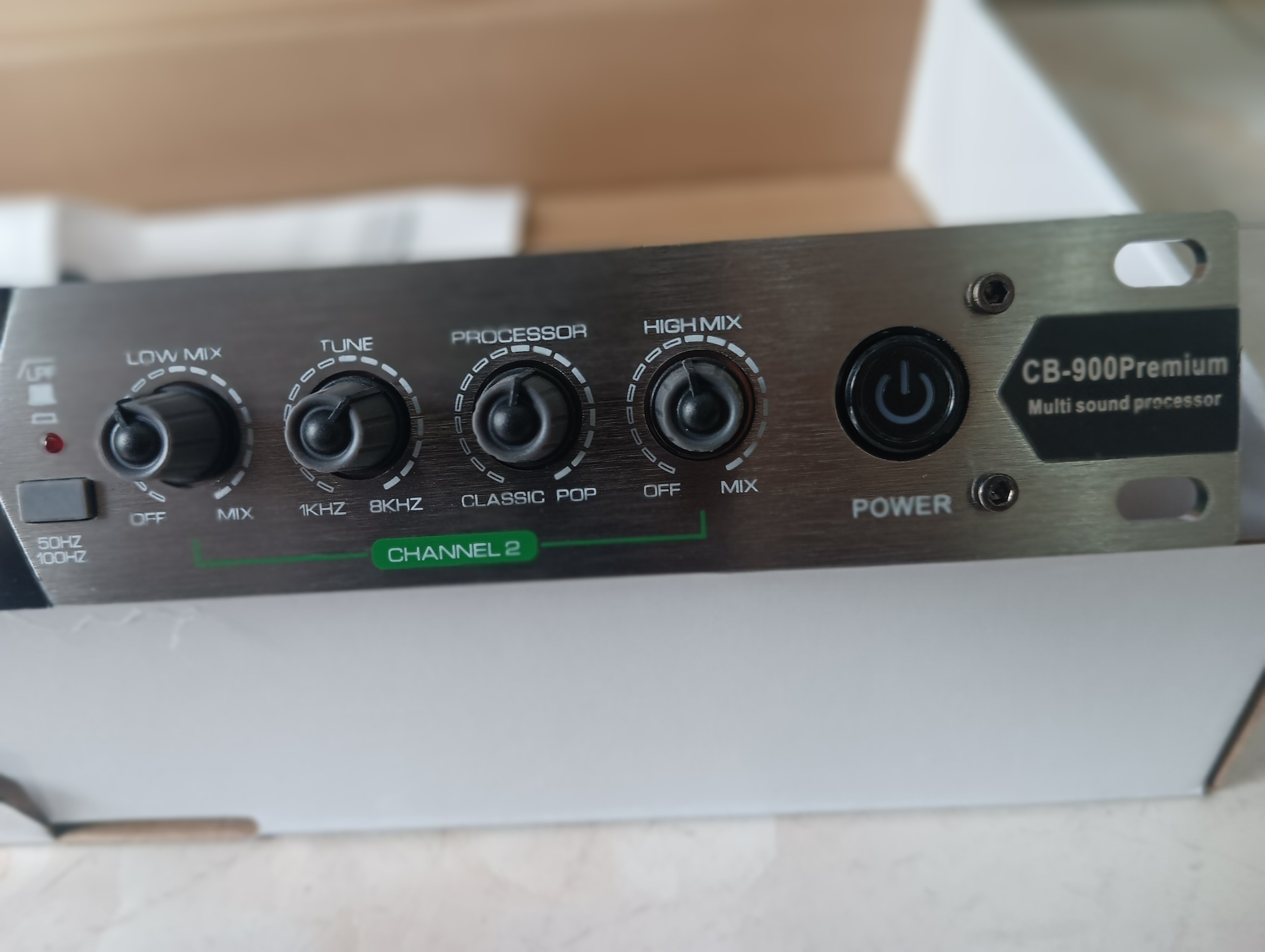 Quan trọng nhất là nútđể bật mở chắc năng nâng tiếng HÔNG SỐ KỸ THUẬT Hãng sản xuất T.D Acoustic Mã model CB-900 Premium Điện áp 220V Vỉ mạch 2 lớp + tráng đồng độ dày 4mm Triết áp Màng các bon made in SOUDWELL Rắc Input- Output Mạ vàng 24k made in ZHENGWEI IC ổn áp KIA 7805-7815 nhập khẩu Korea Biến áp Dây lõi đồng japan 17v Kích thước Trọng lượng ~ 3 kg