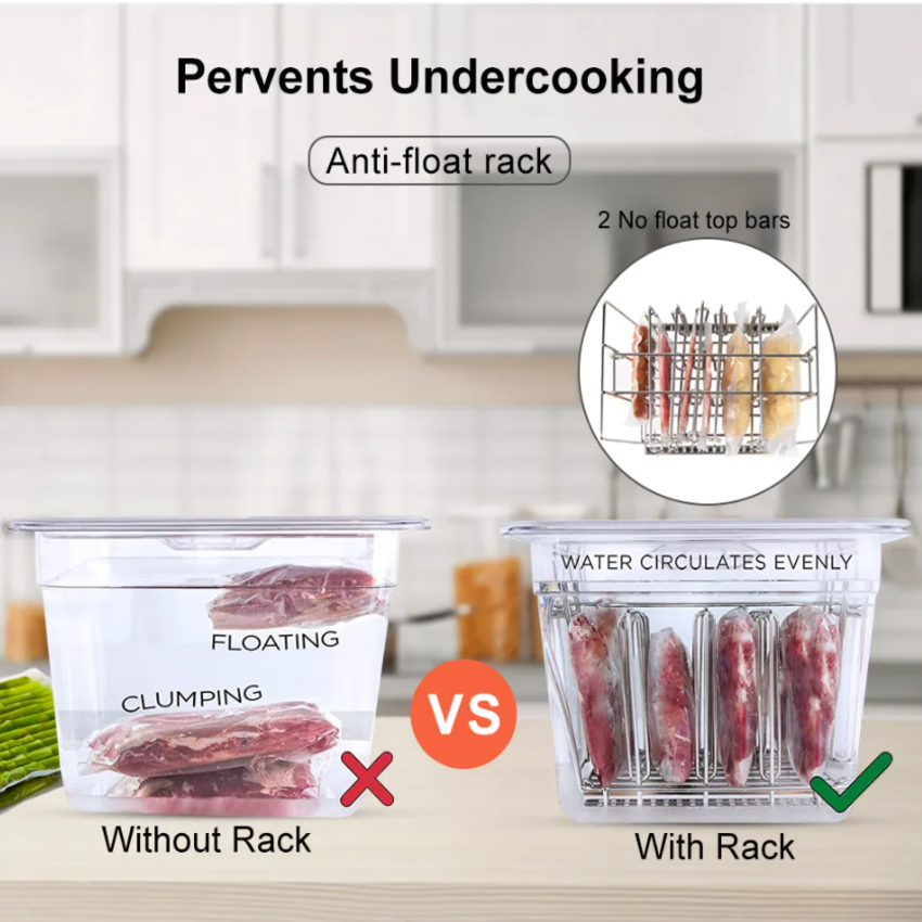 - Thiết bị đạt tiêu chuẩn chống nước cao IPX7, giúp an toàn khi sử dụng. Nấu ăn như một Cheef Pro – Bộ nấu ăn mới Biolomix Sous Vide SV-1900 mới cho phép bạn nấu một bữa ăn chất lượng như nhà hàng tại nhà. Bếp Sous Vide của chúng tôi là thiết bị nhà bếp hoàn hảo để nấu các loại rau, thịt và hơn thế nữa với khả năng kiểm soát nhiệt độ nấu nhất quán và chính xác. Tính năng hoàn hảo – Bảng điều khiển Hẹn giờ - Kỹ thuật số chính xác giúp nhiệt độ chính xác đến 0,1 ℃ và thời gian tính đến hàng phút. Phạm vi nhiệt độ đa dạng (Tối đa 95 ℃) và kiểm soát thời gian tối đa 99 giờ 59 phút cho phép bạn nấu bất kỳ loại thực phẩm nào bạn thích. Chế độ nấu bằng Sous vide ngăn chặn tối đa mất nước cần thiết và giữ lại nhiều chất dinh dưỡng và vitamin hơn so với các phương pháp nấu ăn khác. Dễ đáng sử dụng và vệ sinh – Chỉ cần gắn nồi vào bất kỳ nồi nào, thêm nước, cho các nguyên liệu của bạn vào túi hút chân không. Bắt đầu nấu chỉ với một nút bấm trên thiết bị. Chế độ hẹn giờ và kiểm soát nhiệt độ của nồi Sous vide cho phép bạn thư giãn trong khi nấu ăn, các phần tiếp xúc nước bằng thép không gỉ có thể tháo rời của bếp sous vide an toàn và vệ sinh dễ dàng, thiết bị nhà bếp này dễ dàng vệ sinh và bảo trì. Làm nóng nhanh