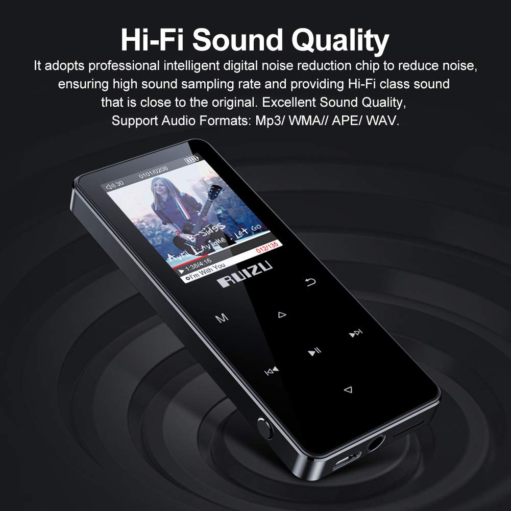 - Máy nghe nhạc RUIZU D19 thiết kế nhỏ gọn, kiểu dáng thể thao, màn hình màu TFT 2,4 inch cảm ứng mang lại hình ảnh sắc nét, kết nối bluetooth 5.0 ổn định trong phạm vi