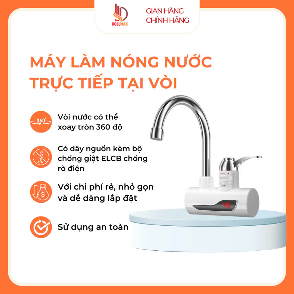 Thông số kỹ thuật: - Tên sản phẩm: Máy làm nóng nước trực tiếp tại vòi - Công suất: 3000W - Điện áp: 220V/50Hz - Thời gian làm nóng: 3-5 giây - Bộ sản phẩm bao gồm: 1 thân máy, 1 vòi rửa, dây cắm kèm bộ chống giật - Bảo hành: 24 Tháng có thể lắp thêm vòi sen để dùng tắm nước nóng cực tiện.