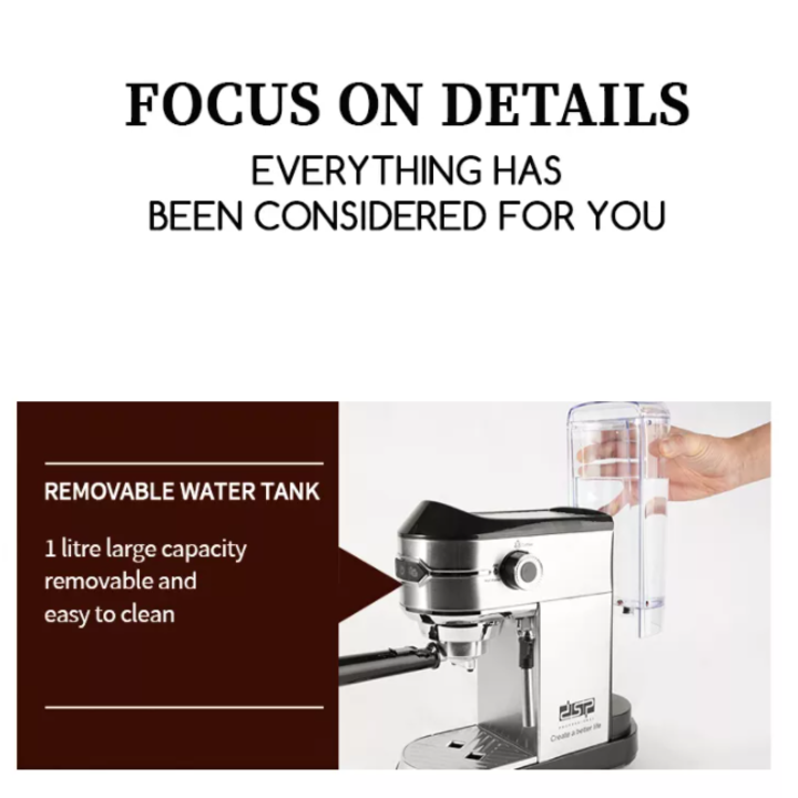 Mua tại TiktokMáy pha cà phê Espresso DSP KA3065 Áp lục bơm 15bar - Hàng Chính Hãng Thiết kế nhỏ gọn, hiện đại