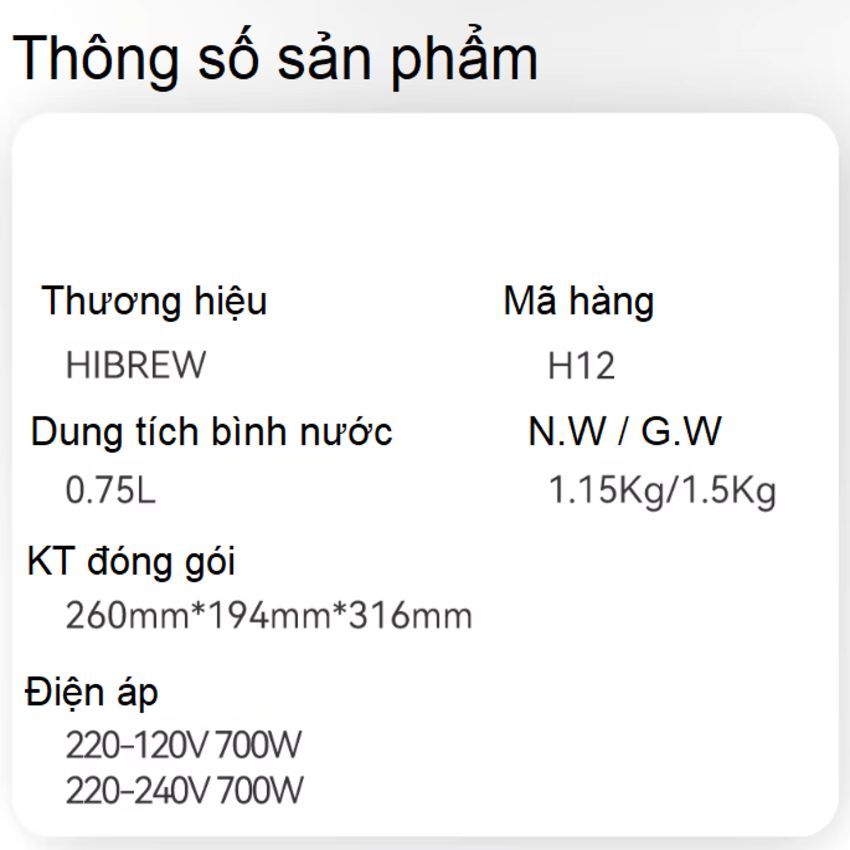 ✨Máy pha cà phê, pha trà tự động Drip thương hiệu Mỹ cao cấp HiBREW H12 - Công suất 700W - Hàng nhập khẩu