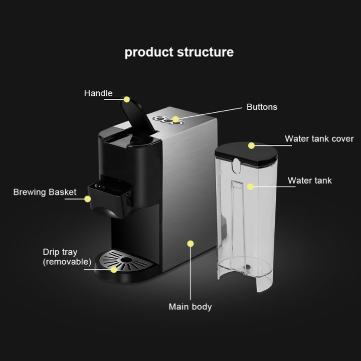 - Tương thích với Capsule of Nespresso, Dolce Gusto hoặc cà phê xay. Tạo ra đồ uống cà phê theo phong cách barista mọi lúc, nhờ vào hệ thống chiết xuất và vận hành một chạm của chúng tôi, mang đến áp suất lên đến 19 bar.