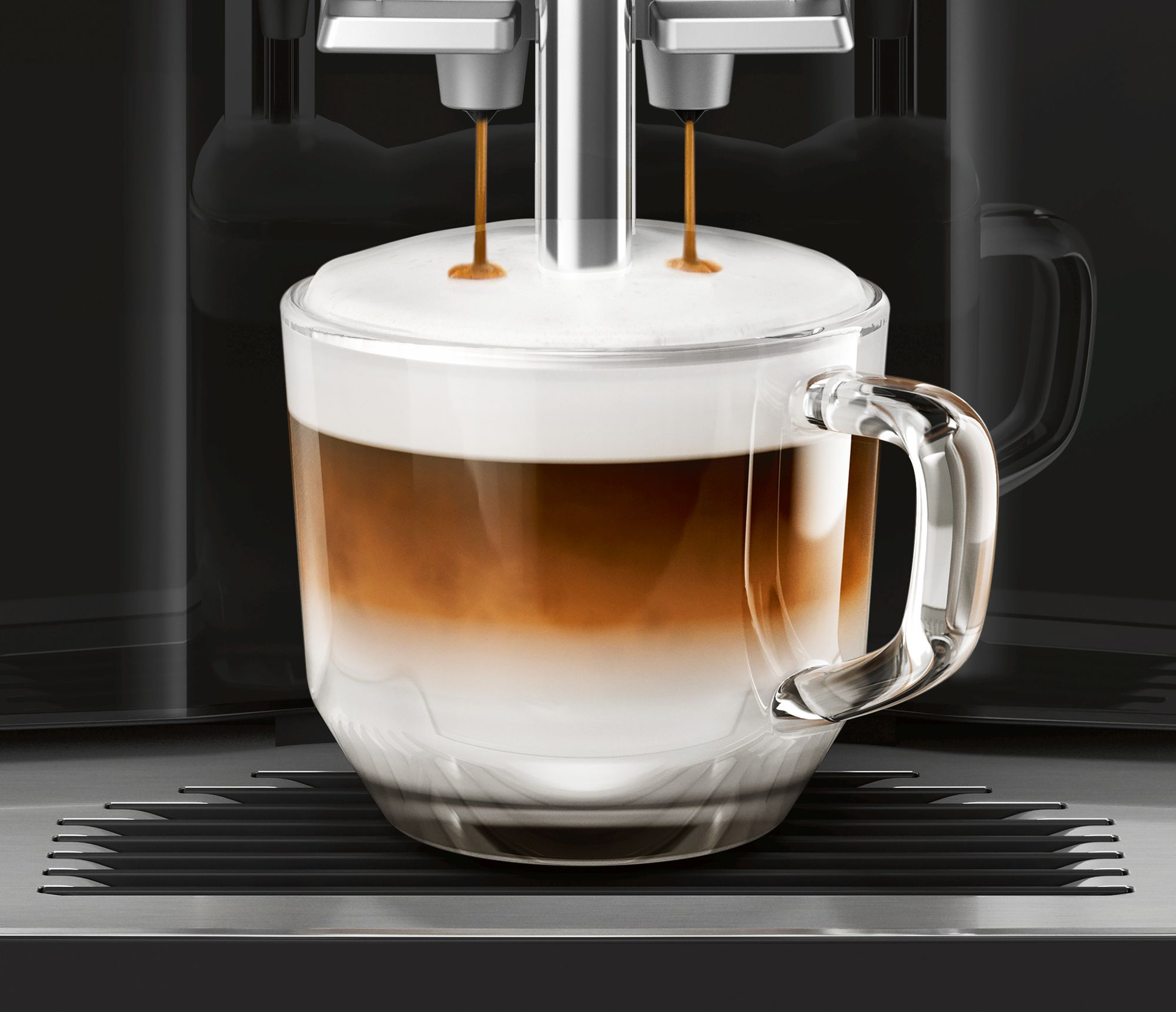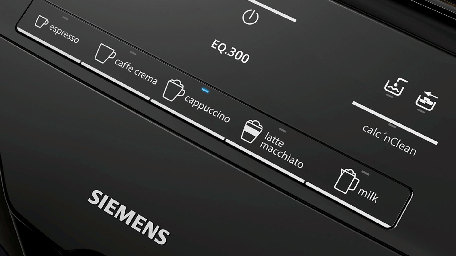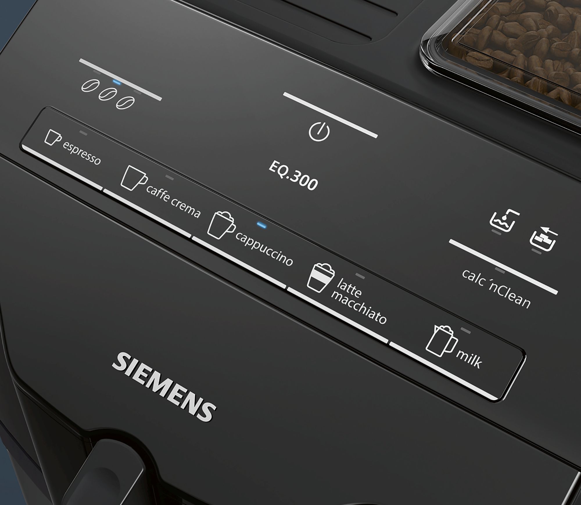 Máy pha cà phê hoàn toàn tự động EQ.300 Black TI35A509DE Chuẩn bị dễ dàng với chức năng oneTouch và tận hưởng tối đa. - ceramDrive: Máy mài chất lượng cao làm bằng gốm không mài mòn - Pha