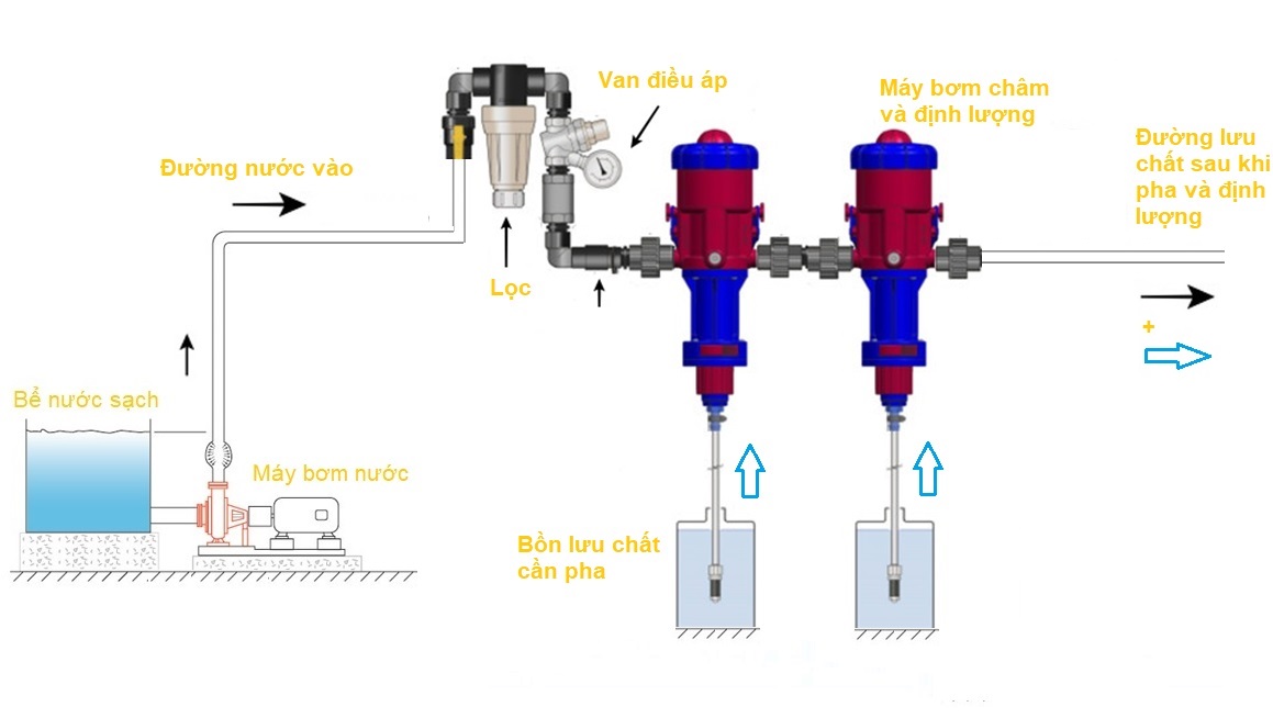 - Hút và pha trộn thuốc thú y, khoáng chất,... cho vật nuôi uống (heo, gà, vịt,...).
