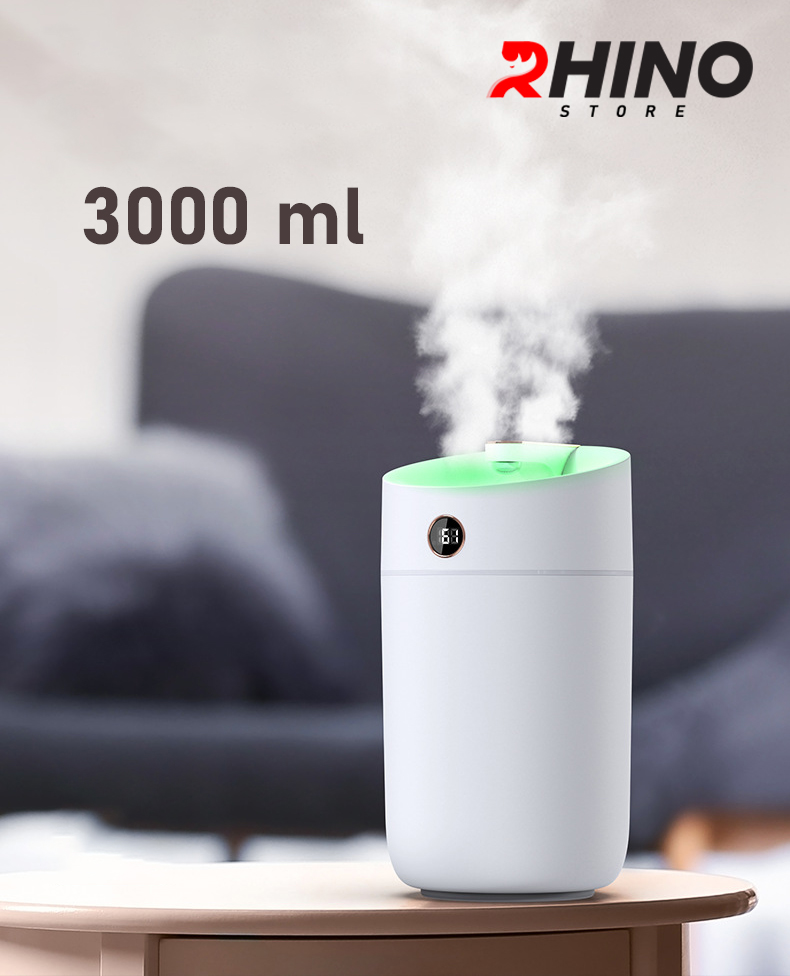 ✨Máy phun sương tạo ẩm cỡ lớn Rhino H801 3000ml, 2 lõi phun, tích hợp đèn 7 màu, dung tích lớn cho không gian rộng - Hàng chính hãng