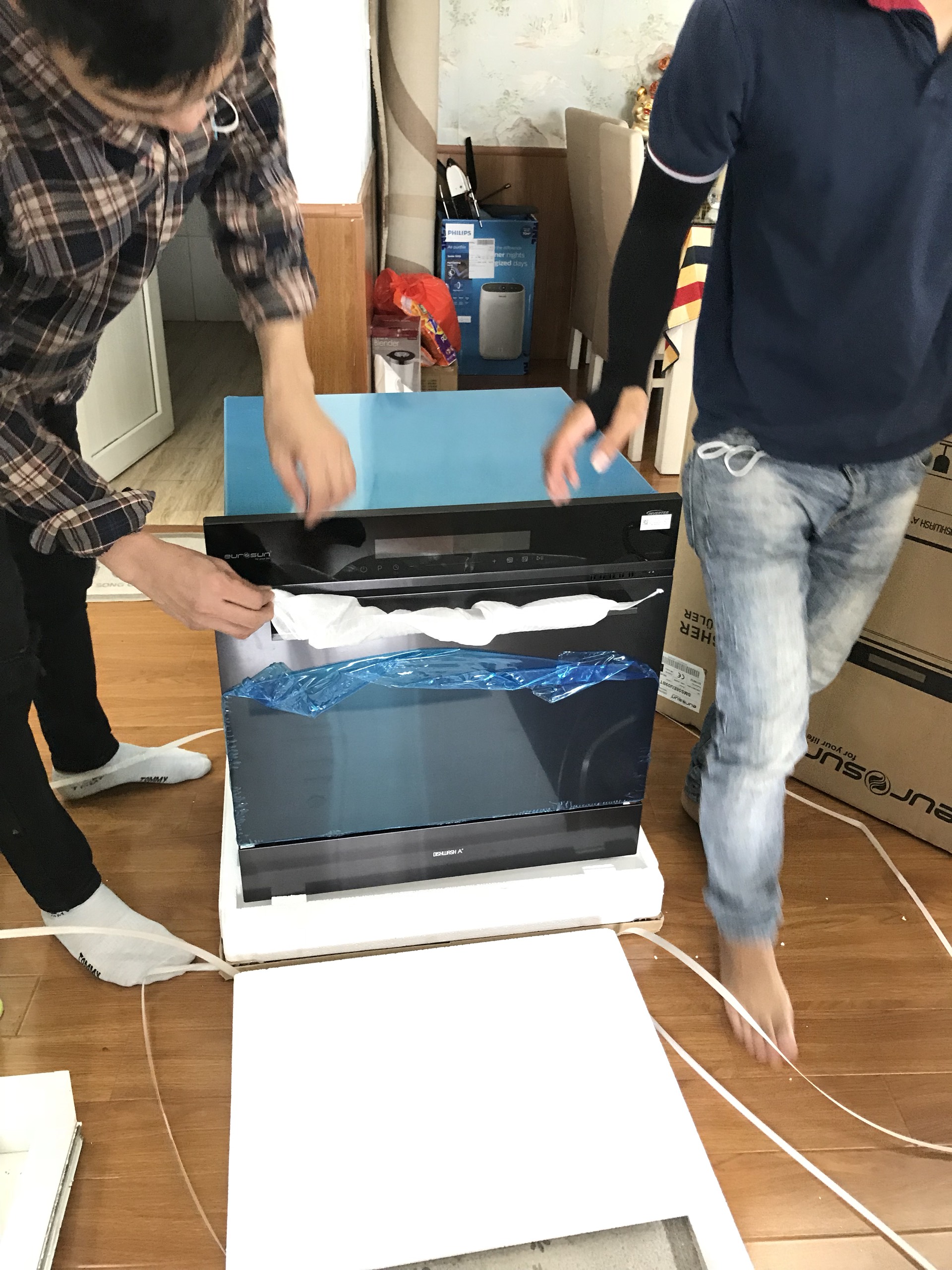 Hình ảnh lắp đặt âm tủ - Máy rửa bát Eurosun SMS58EU09BT - Tại nhà khách hàng - Ảnh 1