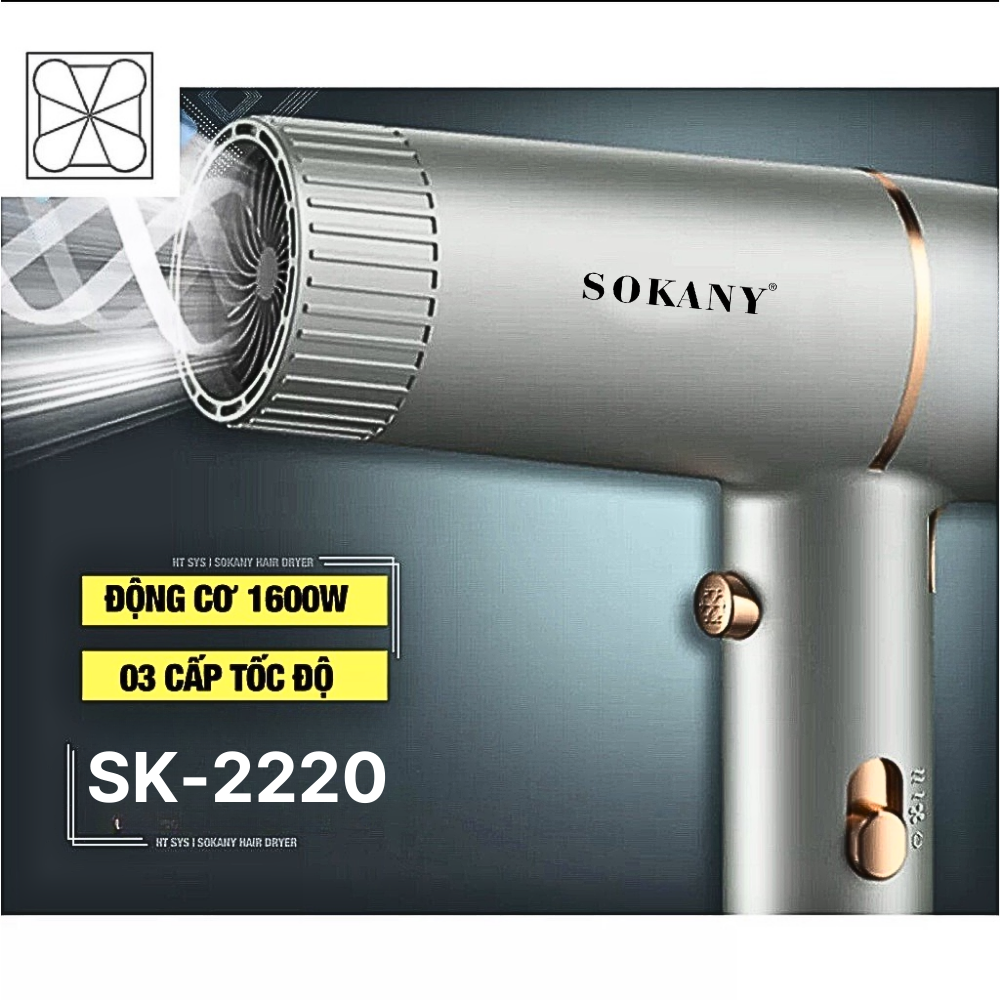 Máy sấy tóc 2 chiều nóng lạnh SOKANY công suất 1600W, tạo ion chăm sóc tóc, tạo kiểu, SK-2220 - HÀNG CHÍNH HÃNG CAM KẾT ĐỔI MỚI TẠI NHÀ TRONG VÒNG 15 NGÀY, BẢO