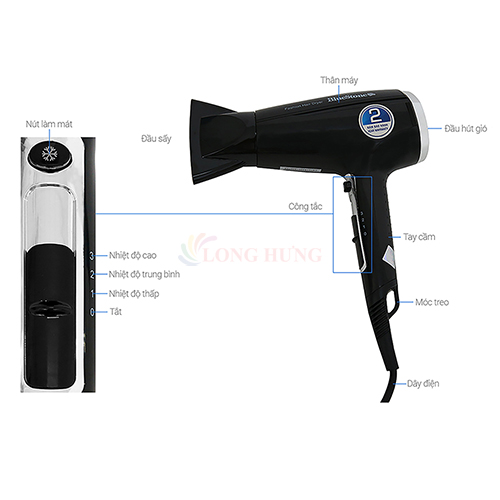 Tính năng nổi bật Nhờ sự kết hợp cân bằng giữa luồng khí mạnh mẽ và phân phối nhiệt nên máy sấy 2000W này hoạt động hiệu quả tương đương với máy sấy 2300W Cấu