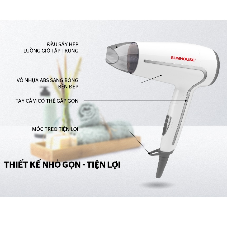 ✨Máy sấy tóc gấp gọn Sunhouse SHD2308W 1500W - Hàng chính hãng