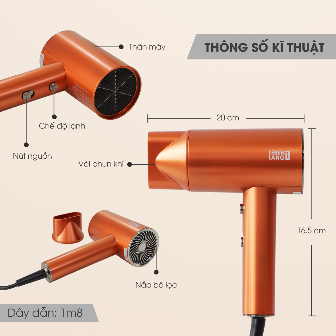 ✨Máy sấy tóc Lebenlang LBL3088 công suất 2100W của Đức, chống xơ rối tóc bằng công nghệ ion - Hàng Chính Hãng