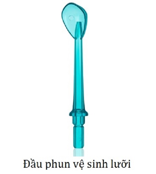 - 4 đầu tip: 1 đầu bàn chải răng, 1 đầu vệ sinh lưỡi, 1 đầu phun nướu, 1 đầu phun áp lực