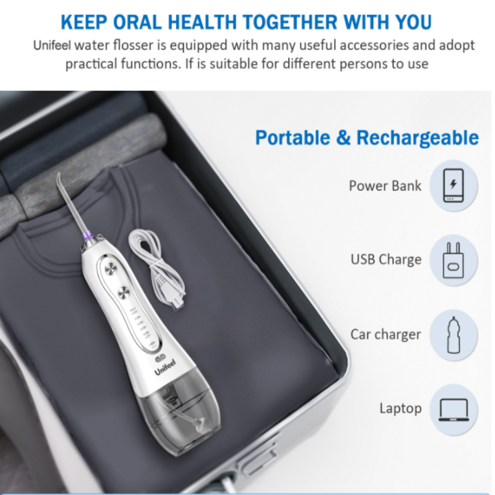 ✨Máy tăm nước kiêm bàn chải đánh răng cầm tay nhãn hiệu Unifeel HF-6 Có 5 chế độ hoạt động - HÀNG NHẬP KHẨU