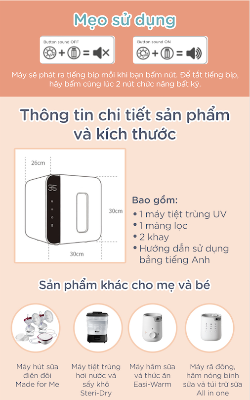 Các chức năng xịn xò của Máy tiệt trùng bằng tia UV và sấy khô Tommee Tippee
