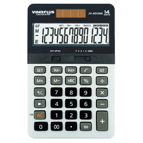 THÔNG TIN CHI TIẾT Tên sản phẩm: Máy tính JS-40TVN Thương hiệu: VINAPLUS Model: JS-40TVN Bảo hành: 2 năm Kích thước (dài x rộng x dày): 176 x 109 x 17 mm Hiển thị: 14