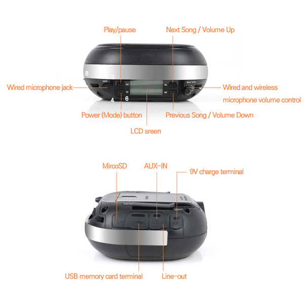TÍNH NĂNG CƠ BẢN - Loa công suất 8w , sử dụng micro có dây và mạch điện tử khuếch đại âm thanh Advanced AB, cho âm thanh lớn và rõ ràng. - Sử dụng
