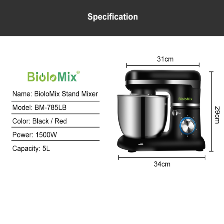 Máy trộn bột và đánh trứng 5 lít thương hiệu cao cấp BioloMix BM785LB - Công suất 1500W - HÀNG NHẬP KHẨU