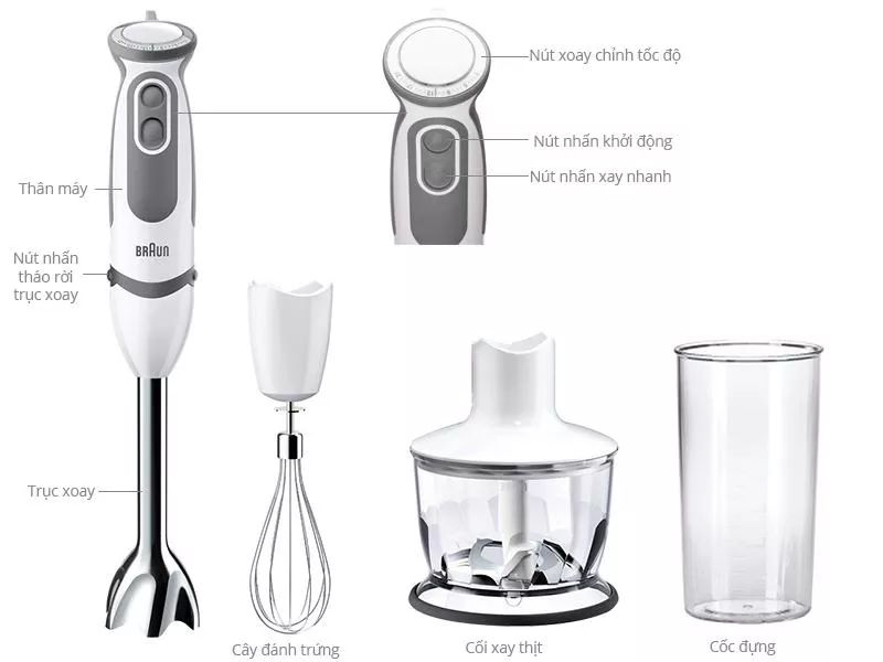 Thương hiệu Braun | Thiết kế tại Đức Công suất: 500W Dung tích cối: 500ml Chất liệu: Nhựa BPA free, thép không gỉ, an toàn với thực phẩm Công nghệ Quadblade tiên tiến Xay nhuyễn