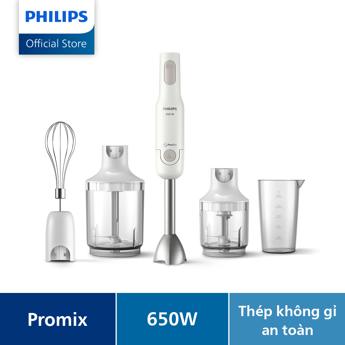 Máy xay cầm tay đa năng Philips HR2537 – Mạnh mẽ, nhỏ gọn, tiện dụng Philips HR2537 là lựa chọn thông minh cho căn bếp hiện đại. Với động cơ 650W, công nghệ ProMix tiên