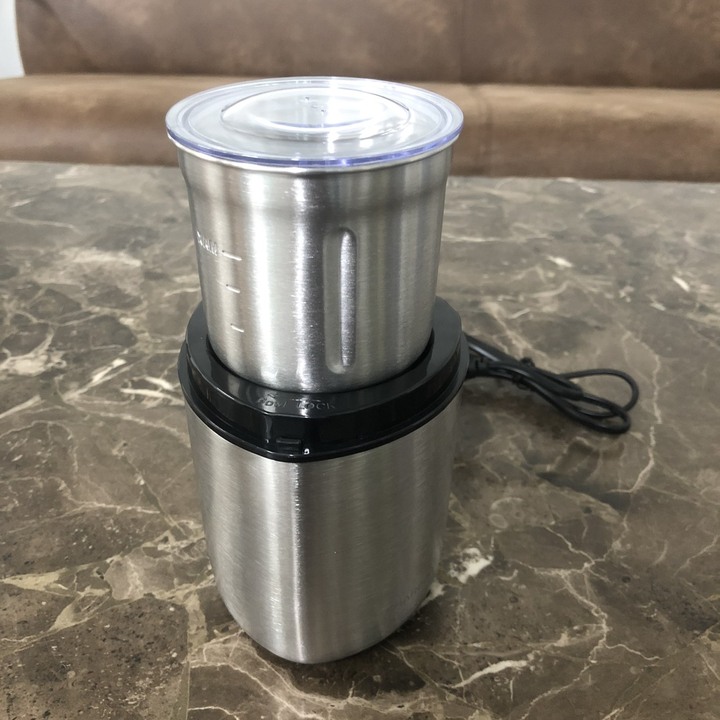Mua tại TiktokThông số kĩ thuật 220V-50Hz -150w Dung tích xay 30-50 gram tuỳ loại hạt khô -Máy xay cà phê , hạt khô các loại như tiêu, vừng, lạc, các loại đậ -Máy phù hợp dùng