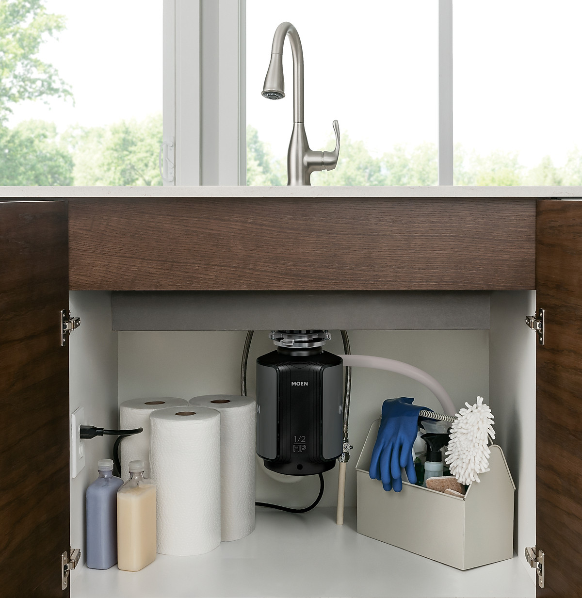 Máy xay rác thương hiệu Moen với thiết kế ưu việt, được sản xuất từ các nguyên liệu chất lượng cao.