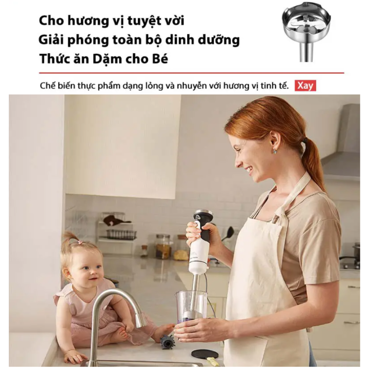 ĐẶT ĐIỂM - Máy xay sinh tố cầm tay gọn nhẹ, thiết kế chống trượt, tiện dụng. - Sử dụng xay sinh tố, xay thịt, xay hạt, xay cháo, đánh trứ linh hoạt. - Công