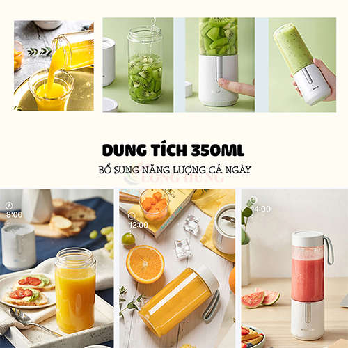Mua tại Tiktok"* Nhỏ gọn với khối lượng 0.4kg, chỉ bằng 25 % so với máy ép bình thường, dung tích 350ml * Thiết kế cối xay kiêm bình nước di động, thuận tiện mang theo khi