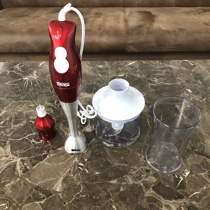 - Máy xay cầm tay DSP KM1004 hoàn hảo với khả năng đánh trứng, xay thịt, và xay hoa quả.