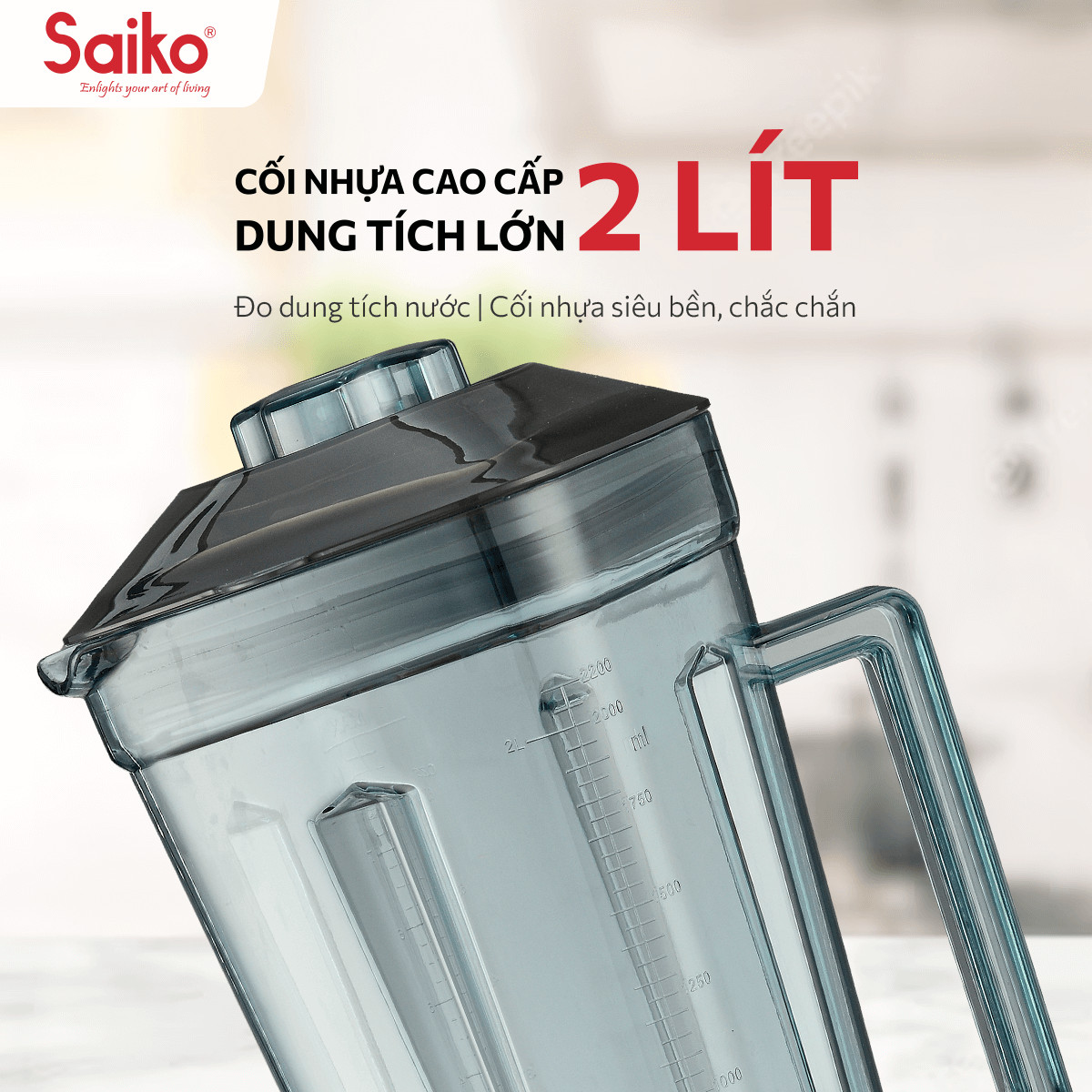 Với cối nhựa cao cấp và dung tích lên đến 2 lít, Saiko BLG-2000S đảm bảo bạn có đủ không gian để chế biến số lượng lớn thực phẩm một cách dễ dàng. Đáng chú ý, cối còn được trang bị vạch đo dung tích giúp bạn quản lý và kiểm soát lượng nguyên liệu một cách chính xác và tiết kiệm.