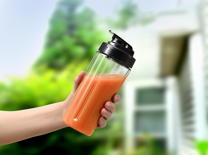 - Xay sinh tố tại nhà và đựng trực tiếp trong cốc có nắp đậy kín hoặc uống trực tiếp từ cốc xay vô cùng tiện lợi. Tháo lưỡi dao, gắn nắp đậy vào bình xay và dễ dàng mang theo trong túi xách.