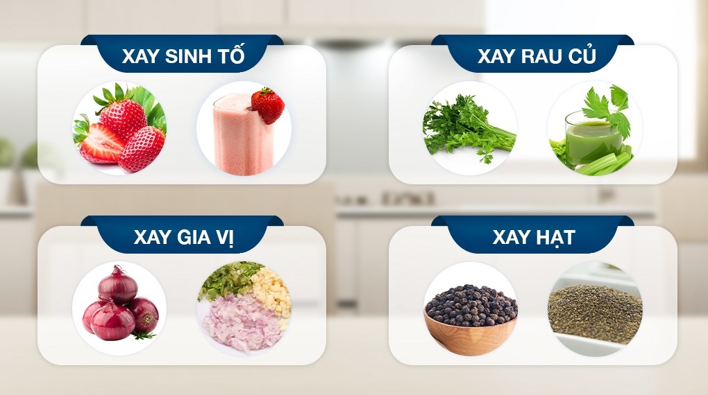 - Công suất: 450 W - Dung tích: 600 ml - Số cối xay: 3 - Công suất mạnh mẽ kết hợp lưỡi dao 4 cánh bằng thép không gỉ giúp xay nhuyễn thực phẩm