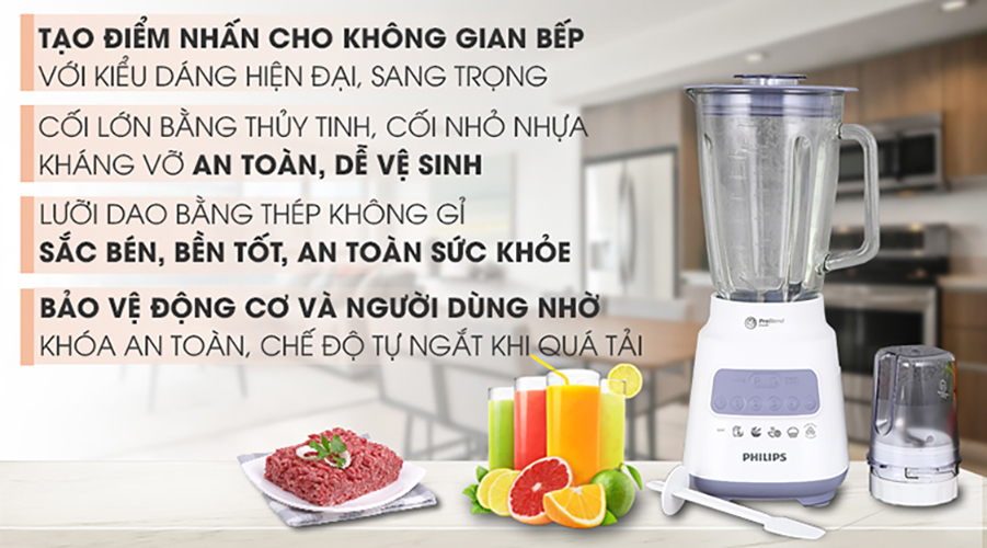 Máy xay sinh tố Philips HR2222/00 (700W) trang bị 2 cối xay dùng xay sinh tố, xay thịt, xay thực phẩm khô vô cùng tiện lợi