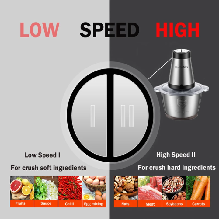 - Tùy chọn hai tốc độ Cao / Thấp cho nhiều loại nguyên liệu khác nhau.