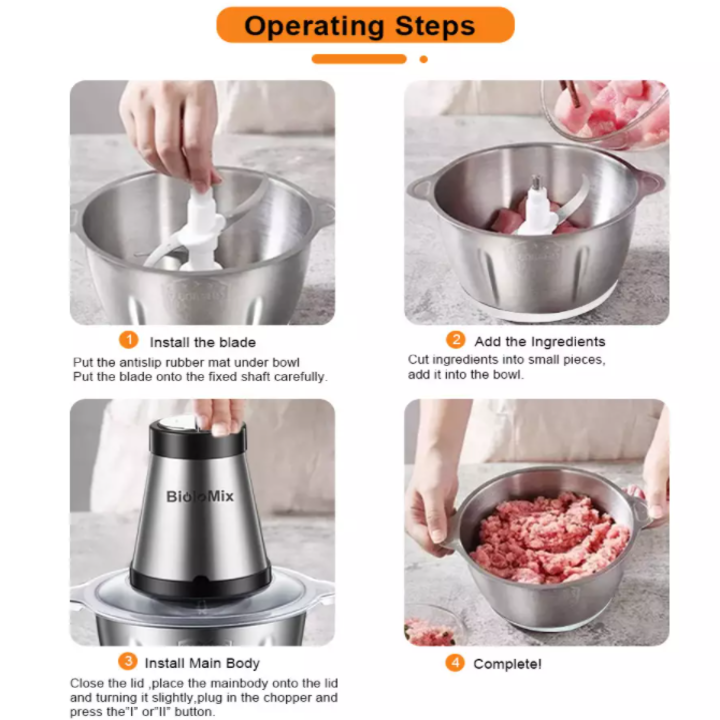 - Bạn có thể xay nhiều loại thực phẩm như: Xay thịt heo, thịt gia cầm, cá và các loại rau quả, gia vị như tỏi, ớt mà không lo mùi thực phẩm bám vào cối sau khi sử dụng. Thiết kế của máy xay thịt có thể dễ dàng tháo rời, vệ sinh và bảo quản. Cối xay mang sự sang trọng phù hợp đến cho không gian nhà bếp. Thông số kỹ thuật sản phẩm – Thương hiệu: BioloMix – Mã hàng: BC615 – Màu sắc: Bạc – Công suất: 500W – Điện áp: 220V – 240V