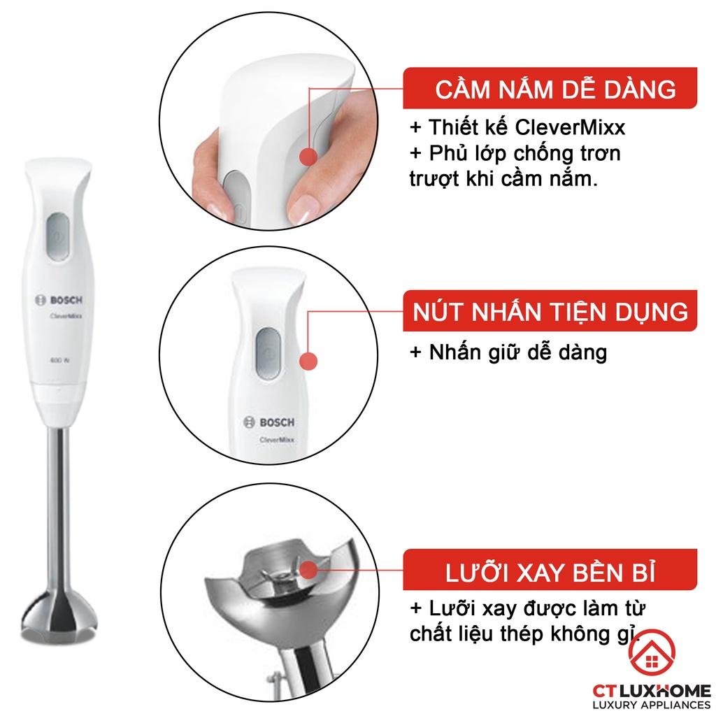 Máy xay sinh tố Bosch thiết kế dạng cầm tay nhỏ gọn, sử dụng linh hoạt, phục vụ hiệu quả trong không gian bếp núc gia đình, có thể xay nghiền trực tiếp thực phẩm trong