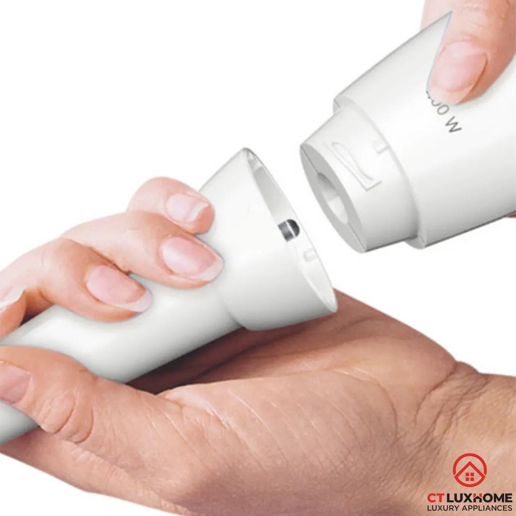 Máy xay sinh tố cầm tay tích hợp thêm chân cắt mỏng hỗ trợ chuẩn bị các món tráng miệng, xay cháo hạt cho bé hay xay trong các ly cốc cỡ nhỏ