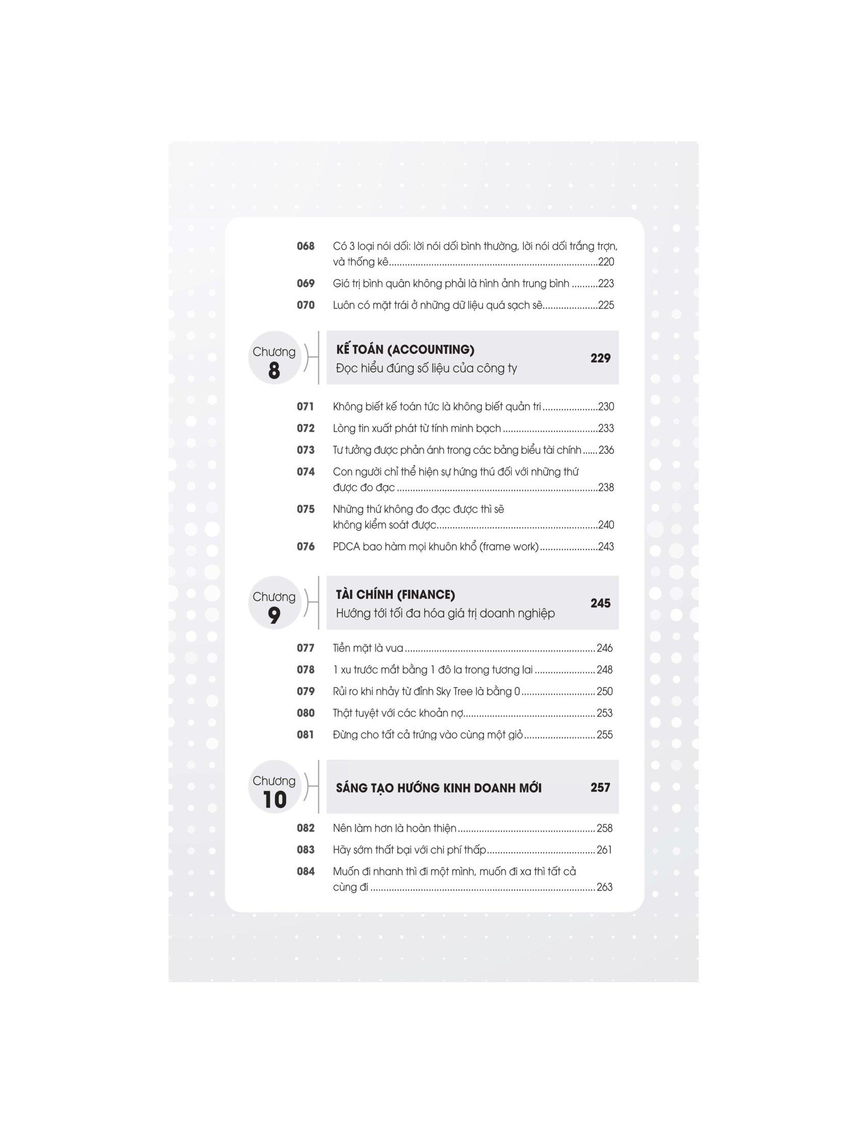 Đối với những người mới bắt đầu học về quản trị kinh doanh thì có lẽ ai cũng đều hiểu một điều rằng, “Trong kinh doanh, những việc như thế này là cơ bản, bắt buộc phải biết”. Nếu trong cuốn sách này có những thứ khiến bạn buộc phải thốt lên rằng, “A, cái này m.ình chưa biết!” thì rất mong các bạn hãy đọc đi đọc lại thật nhiều lần. Ngoài ra, đối với những người là chuyên gia, dân kỳ cựu thì cũng hoàn toàn có thể sử dụng những nội dung trong cuốn sách này để làm gợi ý cho hoạt động thực tiễn hay khi phải đưa ra những quyết định nào đó, hoặc cũng có thể dùng để giảng dạy, hướng dẫn cho cán bộ cấp dưới của m.ình.