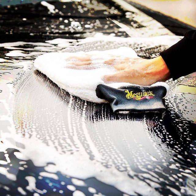 • Đổ khoảng 4 nắp chai xà phòng ra 1 chiếc xô hòa với 3 lít nước sạch, dùng găng tay rửa xe tiêu chuẩn lấy xà phòng đã pha rửa toàn bộ thân xe (tốt nhất nên sử dụng Găng tay rửa xe Meguiar's Microfiber Wash Mitt - X3002 EU)