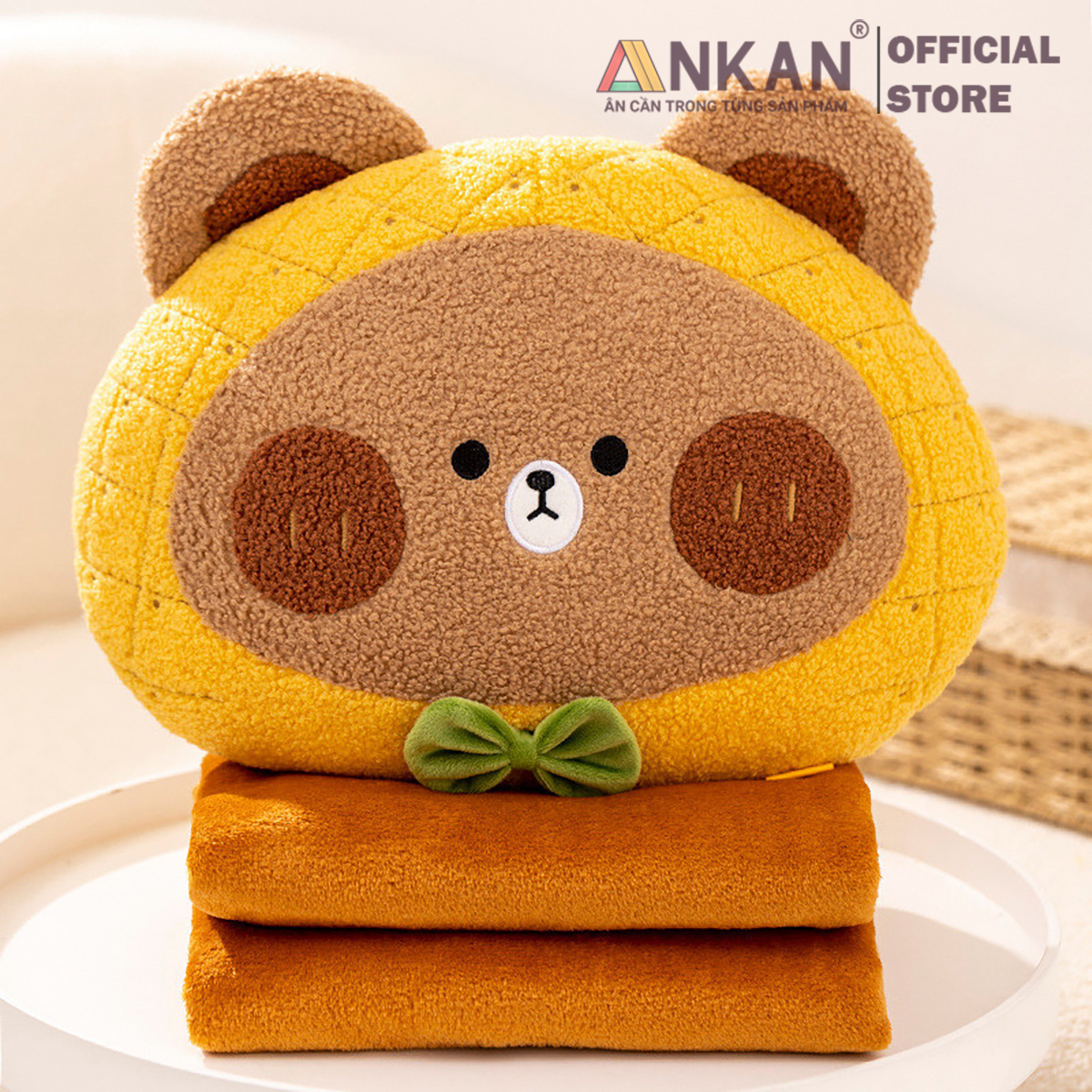 Gấu Orange nằm trong danh sách 5 thiết kế mới cho dòng gối tựa lưng văn phòng kèm chăn 3 trong 1 của Thương Hiệu ANKAN. Với phong cách thiết kế độc đáo và sắc