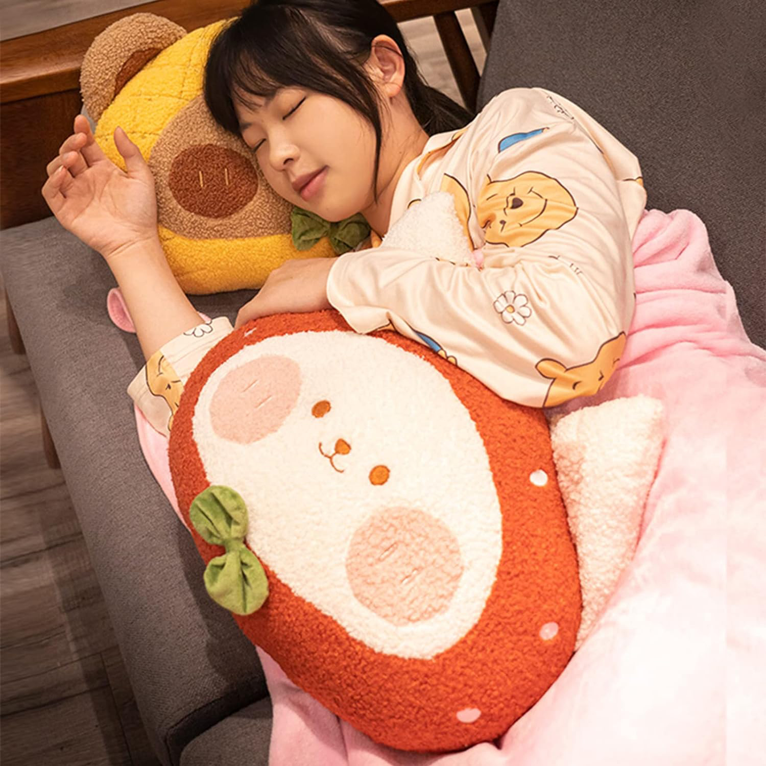 - Gấu Orange, với kích thước lớn hơn, mang lại trải nghiệm tựa đầu và tựa lưng một cách thuận tiện và thoải mái.