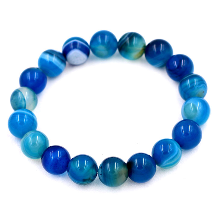 ✨[Mệnh Thủy, Mộc] Vòng Tay Chuỗi Hạt Đá Mã Não Xanh Dương Sọc 10 Ly 18 Hạt