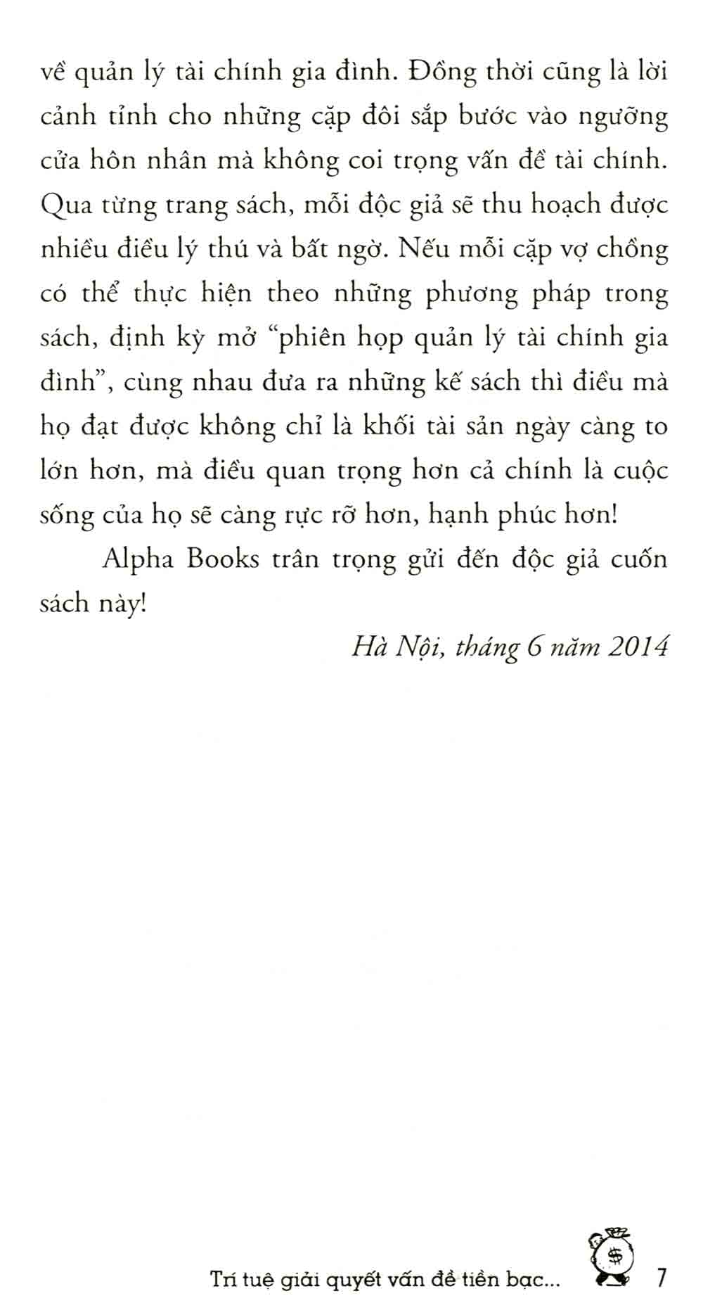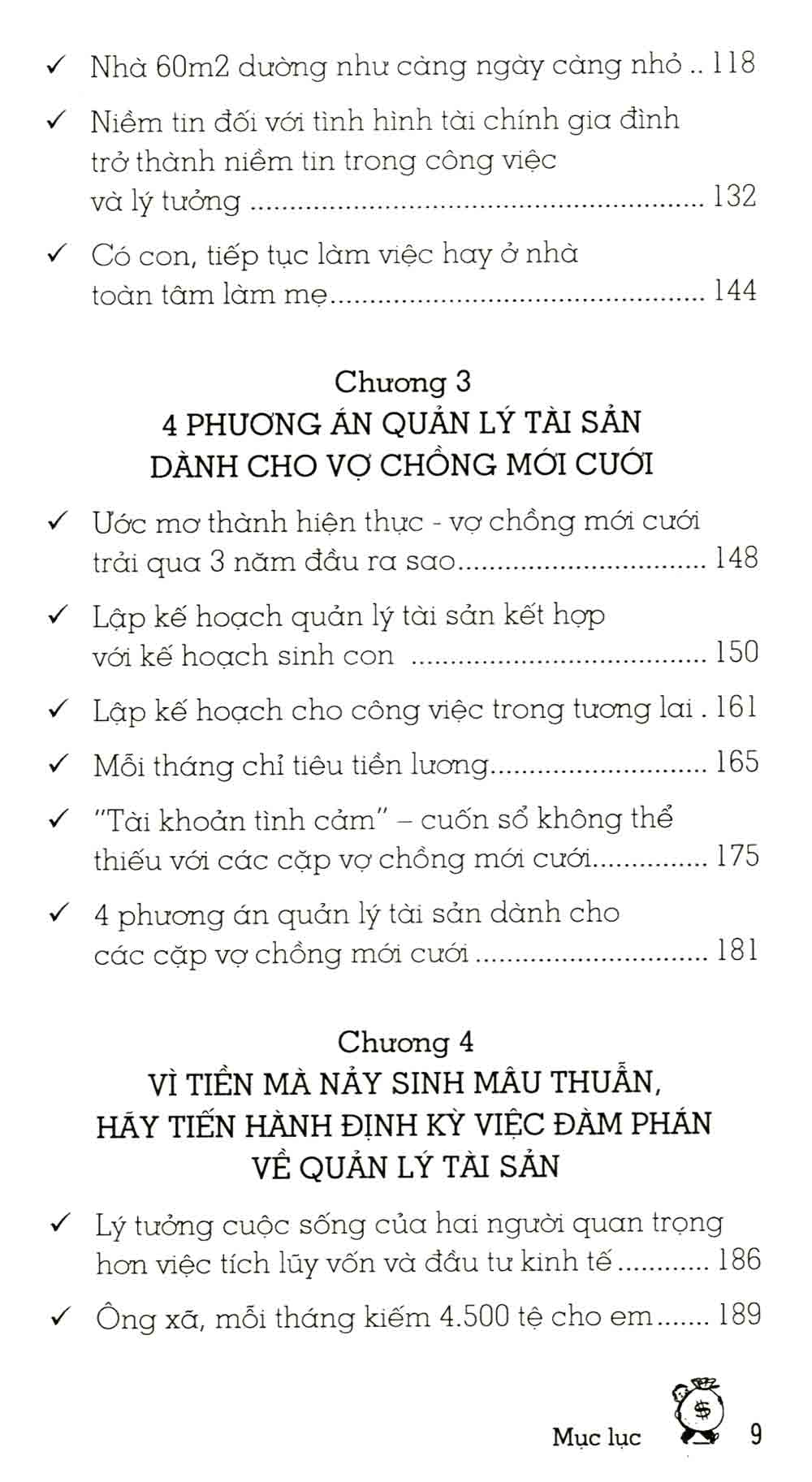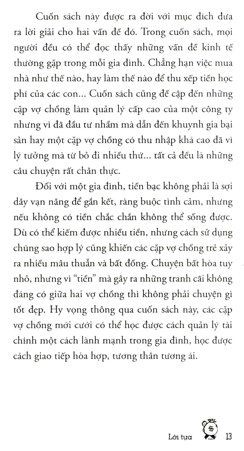 Cuốn sách không chỉ đơn thuần là hướng dẫn lập kế hoạch tài chính, mà còn cung cấp những chiến lược để quản lý tài sản chung sau khi kết hôn và xây dựng một tương lai tài chính vững chắc. Từ cách tích luỹ tiền bạc cho những mục đích dài hạn như mua nhà, nuôi dưỡng con cái đến việc thích nghi với các thay đổi kinh tế, sách cung cấp cho độc giả những công cụ cần thiết để đối mặt với những thách thức tài chính trong cuộc sống hằng ngày.