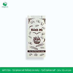 ĐẶC ĐIỂM SẢN PHẨM Chất liệu: Túi bánh mì in thường được làm từ giấy kraft nhật định lượng 50gsm thấm dầu có giấy chứng nhận FDA đảm bảo vệ sinh an toàn thực phầm Thiết kế: Miệng túi thiết kế chia thành 2 lớp dễ dàng thao tác bỏ bánh mì vào túi, đơn giản và tiện dụng    CÔNG DỤNG Tiện lợi: Bảo vệ bánh mì khỏi bụi bẩn, môi trường ô nhiễm, tác động từ bên ngoài và tránh làm dơ tay khi sử dụng Quảng cáo thương hiệu: Túi bánh mì in được sử dụng như một phương tiện quảng cáo nhỏ gọn và hiệu quả, với thiết kế in ấn logo, thông tin về sản phẩm và các thông điệp quảng cáo khác Bảo vệ môi trường: Túi bánh mì được làm từ chất liệu giấy kraft nguyên sinh, giúp giảm thiểu lượng rác thải nhựa và bảo vệ môi trường Tiết kiệm chi phí: Túi giấy bánh mì có giá thành thấp hơn so với các loại bao bì khác như hộp giấy, hộp nhựa đựng bánh mì   TIÊU CHUẨN KỸ THUẬT Chất liệu: Giấy Kraft chuyên dùng cho thực phẩm đạt tiêu chuẩn FDA  Định lượng: 50gsm Mã hàng - Kiểu in - Kích thước  • MFT1N5NN - Túi bánh mì nâu in nâu - "Giỏ bánh mì" - 24x9.5x4.5 cm  • MFT1T5N - Túi bánh mì trắng in nâu - "Giỏ bánh mì" - 24x9.5x4.5 cm  • MFT1N4X - Túi bánh mì nâu in xanh lá - "Best street food" - 24x9.5x4.5 cm  • MFT1T4X - Túi bánh mì trắng in xanh lá - "Best street food" - 24x9.5x4.5 cm  • MFT1N4NN - Túi bánh mì nâu in nâu đỏ - "Best street food" - 24x9.5x4.5 cm  • MFT1T4N - Túi bánh mì trắng in nâu - "Best street food" - 24x9.5x4.5 cm  • MFT1T3C - Túi bánh mì trắng in cam - "Đầu bếp" - 24x9.5x4.5 cm  • MFT1N3NN - Túi bánh mì nâu in nâu đỏ - "Đầu bếp" - 24x9.5x4.5 cm  • MFT1T3NN - Túi bánh mì trắng in nâu đỏ - "Đầu bếp" - 24x9.5x4.5 cm  • MFT1N2NN - Túi bánh mì nâu in nâu đỏ - "Cối xay gió" - 24x9.5x4.5 cm  • MFT1T2N - Túi bánh mì trắng in nâu - "Cối xay gió" - 24x9.5x4.5 cm  • MFT1N1NN - Túi bánh mì nâu in nâu đỏ - "Xe bánh mì" - 24x9.5x4.5 cm  • MFT1T1N - Túi bánh mì trắng in nâu - "Xe bánh mì" - 24x9.5x4.5 cm   LƯU Ý Bảo quản sản phẩm nơi khô ráo, sạch sẽ tránh tiếp xúc trực tiếp với ánh nắng mặt trời và nhiệt độ cao.
