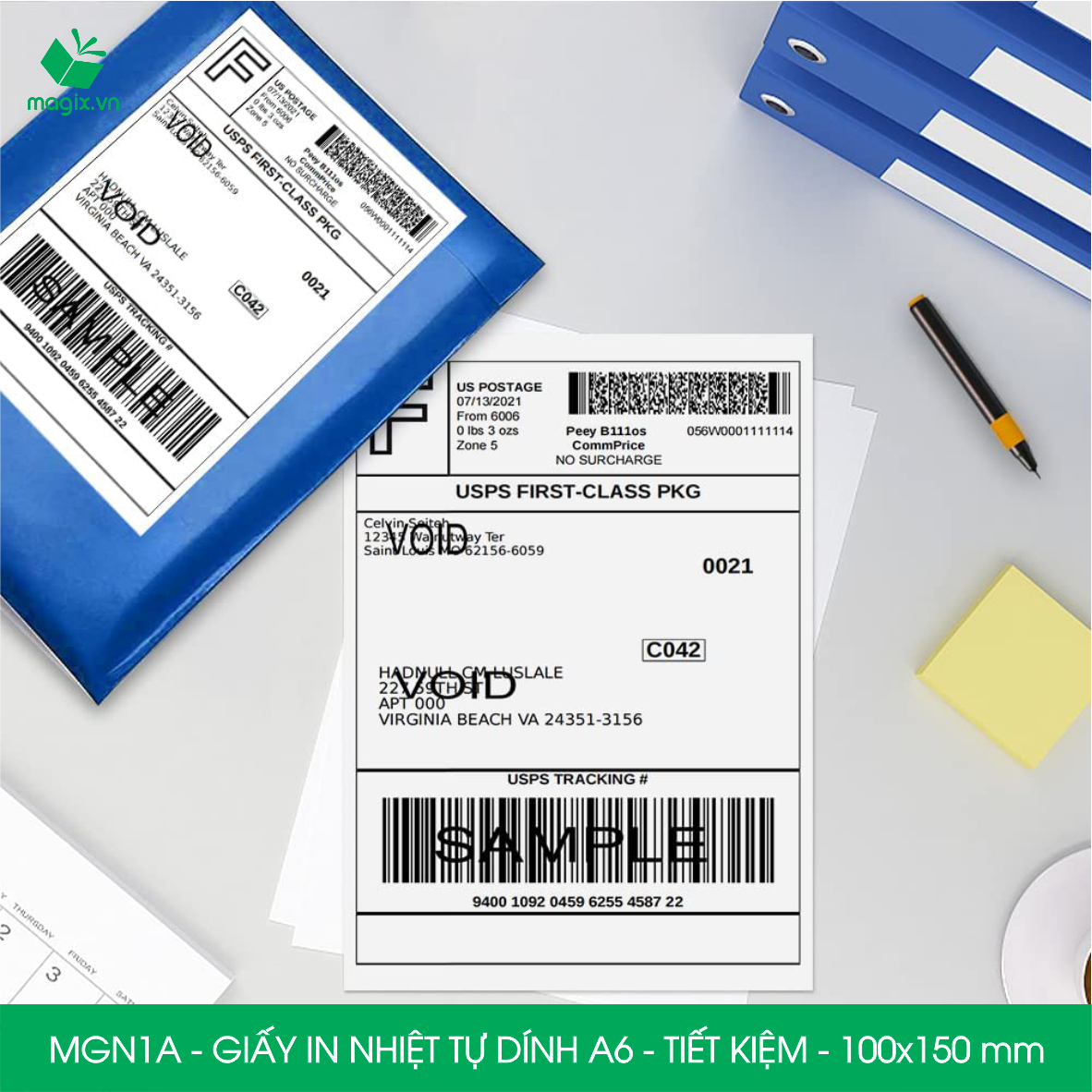 "ƯU ĐIỂM - Giấy có độ bám dính cao: In xong bóc ra dán ngay, dán được trên nhiều bề mặt: túi nilon, thùng carton, thủy tinh, nhựa, . - Giấy chống xước: Do in