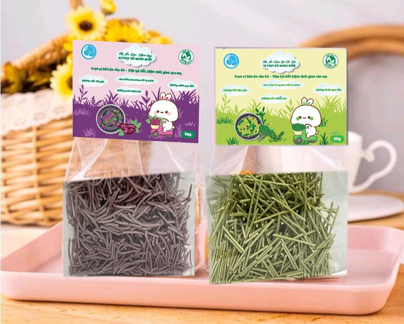 THÔNG TIN SẢN PHẨM: Loại sản phẩm: Mì ăn dặm cải bó xôi sốt kèm rong biển Trọng lượng: 50g Loại sợi: Sợi mì cắt vụn nhỏ, tiện lợi cho bé ăn Màu sắc: Xanh