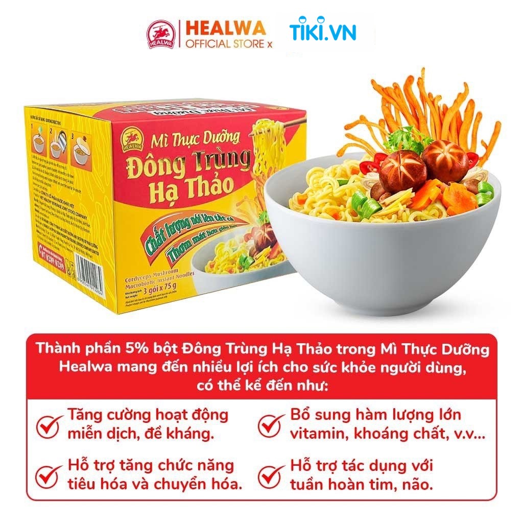 ✨Mì thực dưỡng ăn liền Đông trùng hạ thảo Healwa (1 hộp x 3 gói x 75g) thơm ngon bổ dưỡng chay mặn đều dùng đượ