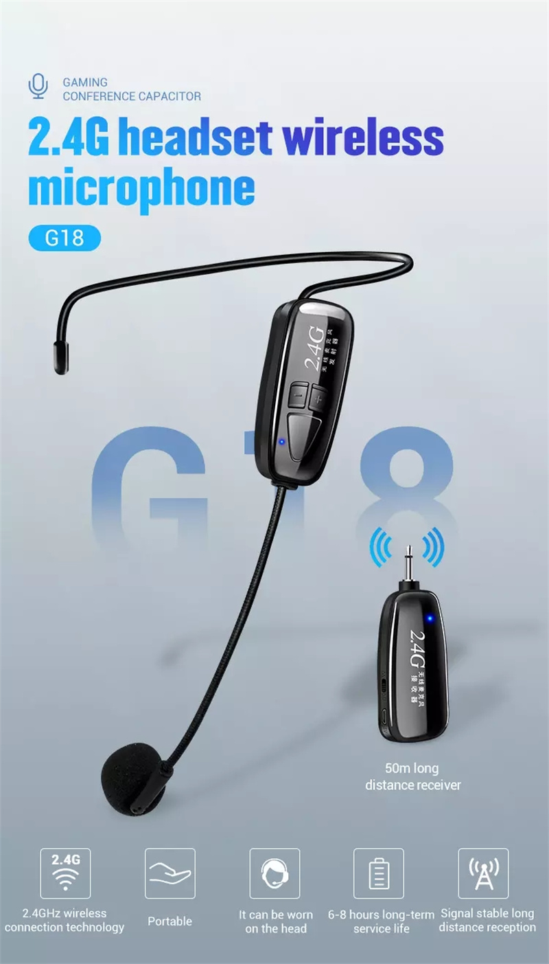 G18 2.4G Wireless Microphone Headset Mic Voice Amplifier Speaker cho Điện Thoại SmartPhone, Android, Trò Chơi Trực Tuyến, Giảng Dạy, Livestream Micro không dây G18 là giải pháp hoàn hảo cho những ai thường xuyên