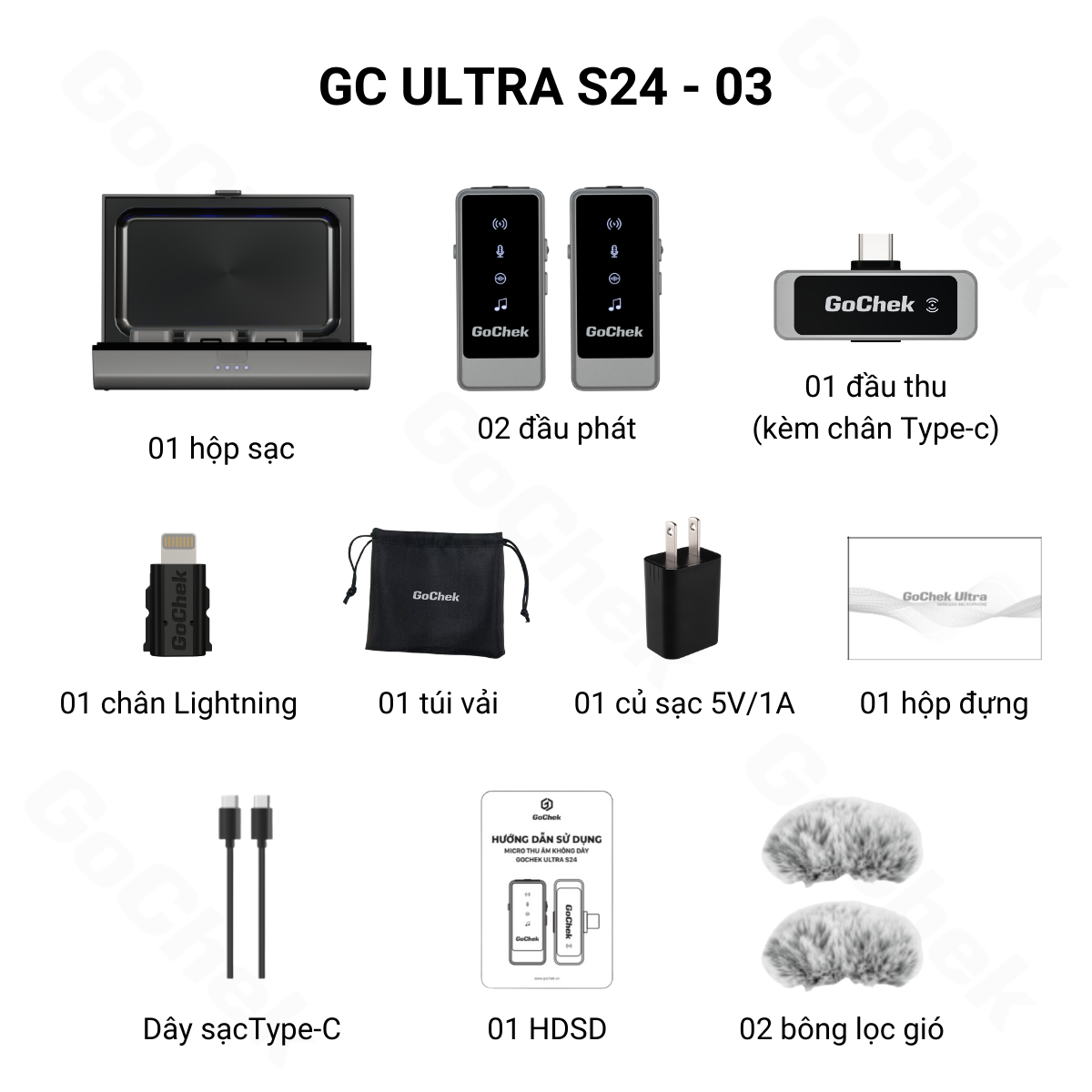 Micro thu âm không dây GoChek Ultra S24, tích hợp 2 chân cắm khi livestream/quay video/ghi âm cho điện thoại/máy tính bảng/PC/Laptop